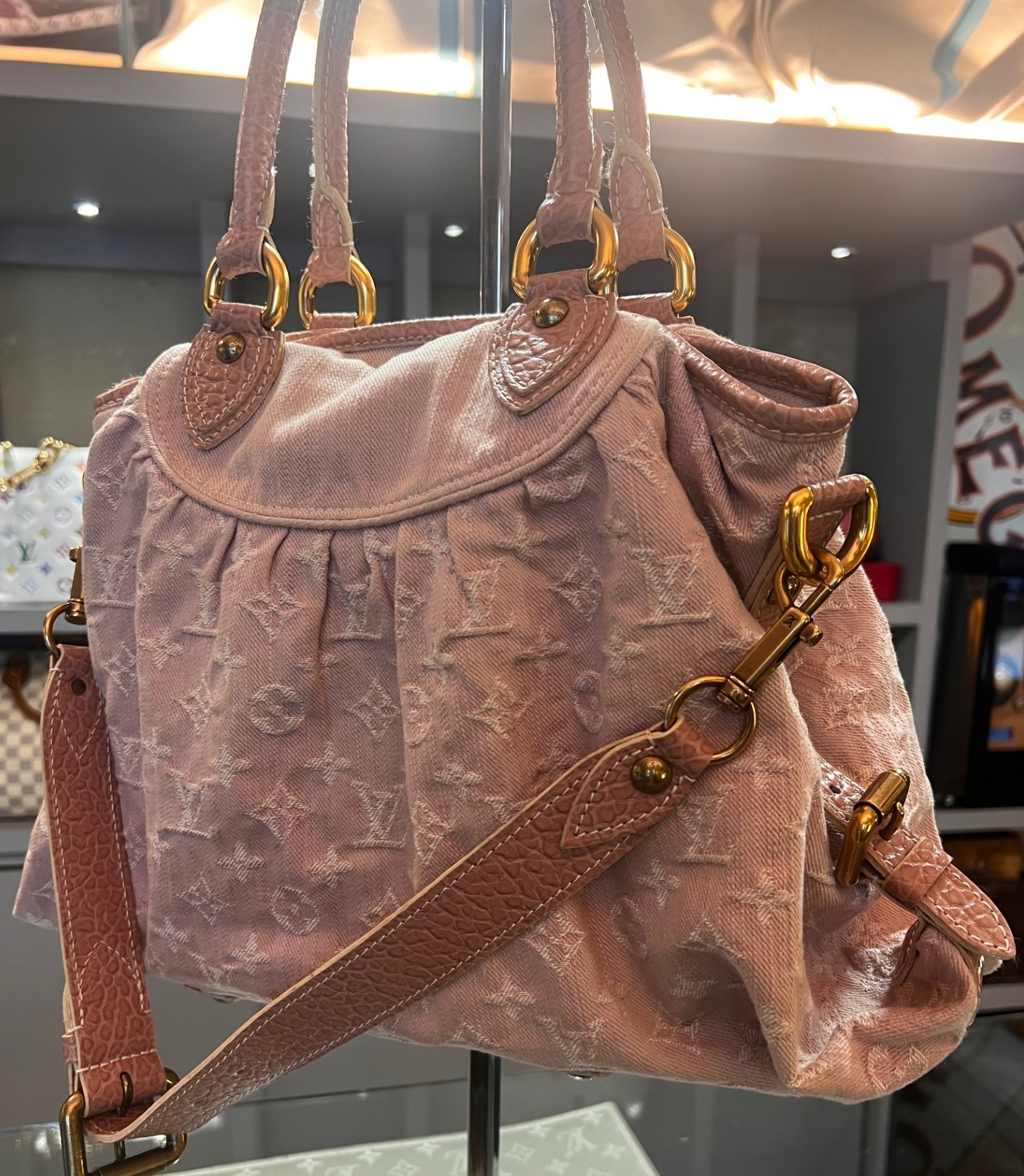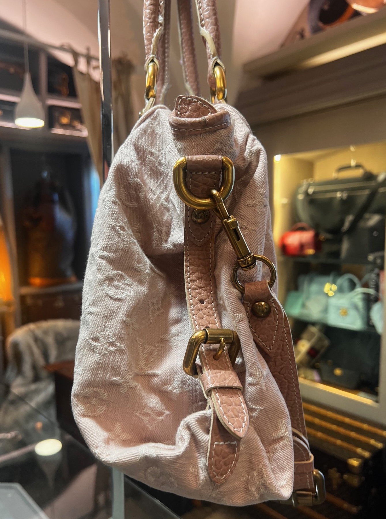 Louis Vuitton borsa denim jeans rosa Cabby MM