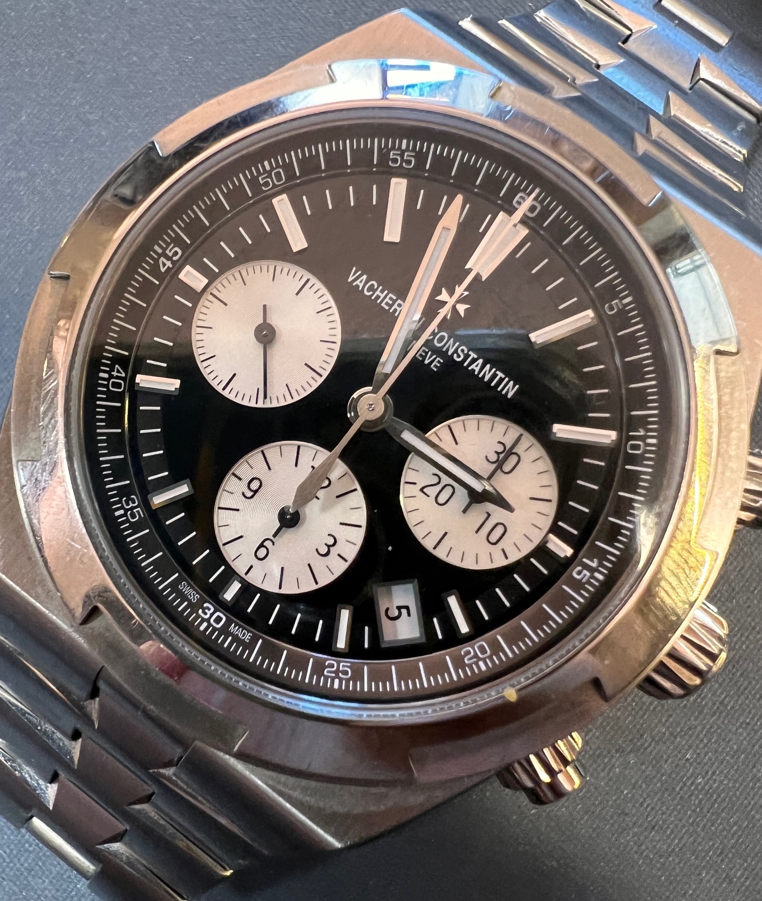 Vacheron Constantin Overseas chrono nero completo di scatola e garanzia originale e garanzia del nostro negozio valida due anni sul buon funzionamento della meccanica siamo aperti anche la domenica spediamo in tutta Italia con guardie giurate e spedizioni assicurate PERMUTIAMO O ACQUISTIAMO IL VOSTRO OROLOGIO USATO DI TUTTE LE MARCHE PIU' PRESTIGIOSE. SI ACQUISTANO ANCHE INTERE COLLEZIONI CONTATTATECI VIA EMAIL aauxilia@hotmail.com o ALLO 0039 0182648598 O 0039 3292116623 ANCHE VIA WHATSAPP SPEDIAMO IN TUTTO IL MONDO CON SPEDIZIONI ASSICURATE PHOTOS PUBLISHED ARE OF THE WATCH OFFERED FOR SALE WE SHIP WORLDWIDE WITH SHIPPING INSURED